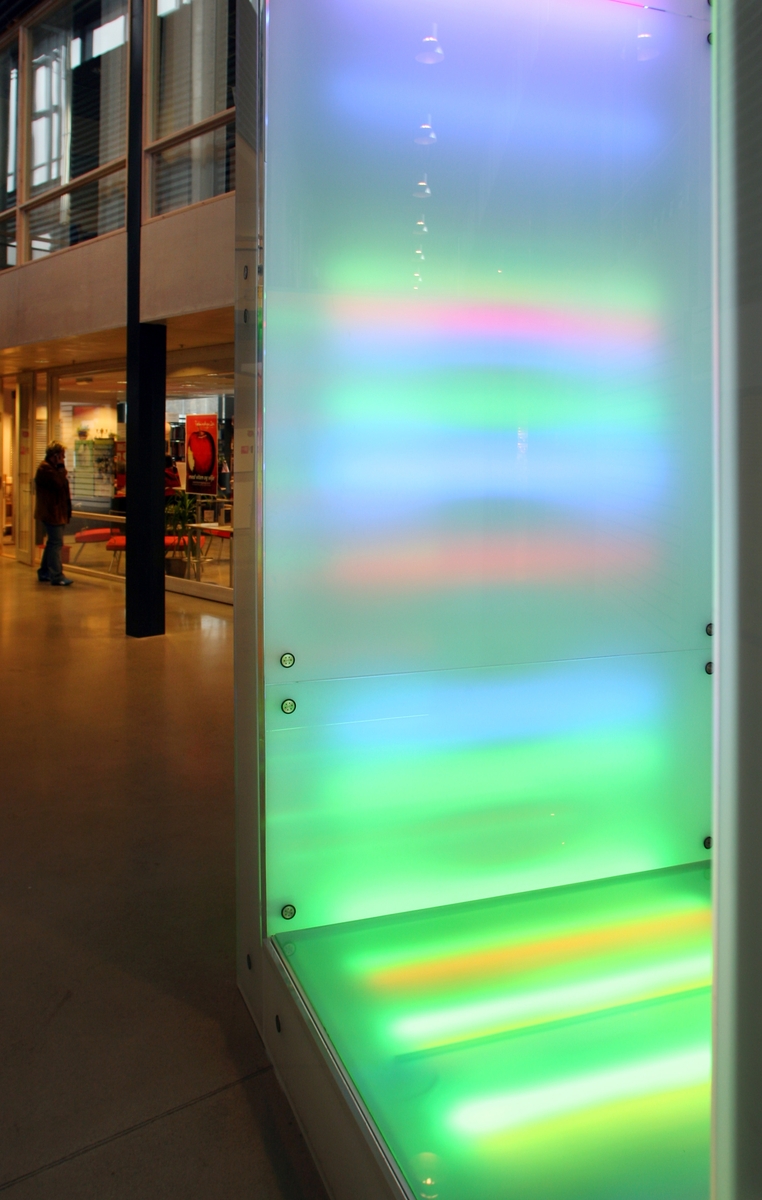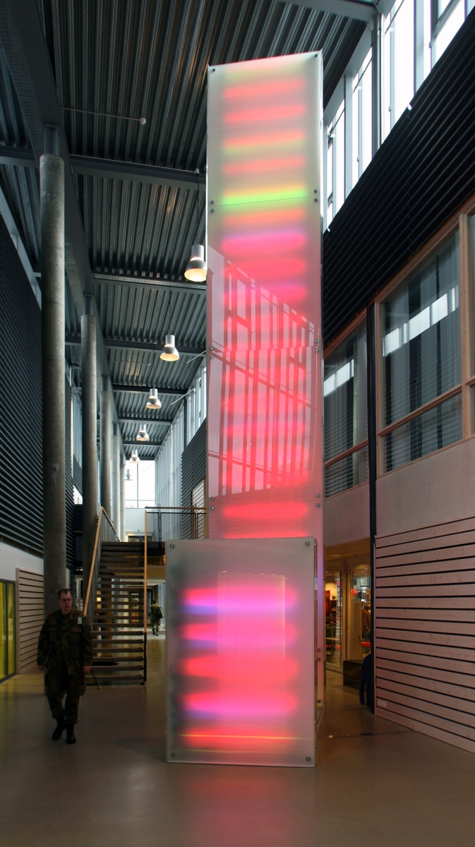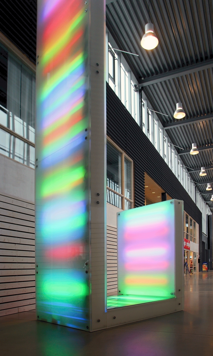 Installasjonen skifter farge, varierer kontinuerlig i styrke og har også lyder som en del av uttrykket. Den er utført med sideliggende rammekonstruksjon i stål, som er kledd med herdet, laminert glass med et tynt hvitt porselensglass på framsiden og baksiden. Sidene er dekket med tykk akryl og er spesielt bearbeidet for å fange lys. Midtpartiet mellom den høye og den lave lysveggen er laget med et ekstra tykt laminert glass som beregnes for å bære vekten av tilskuerne.