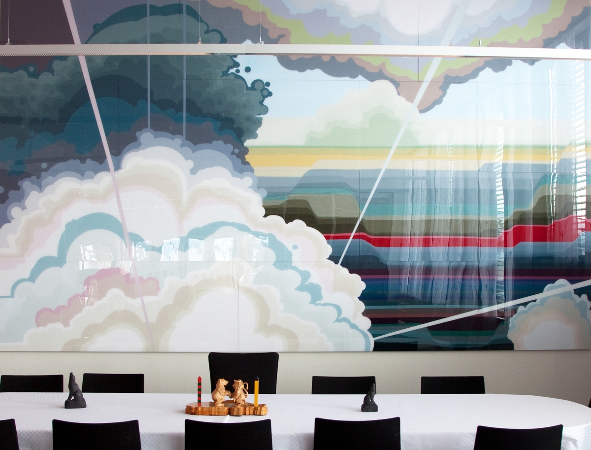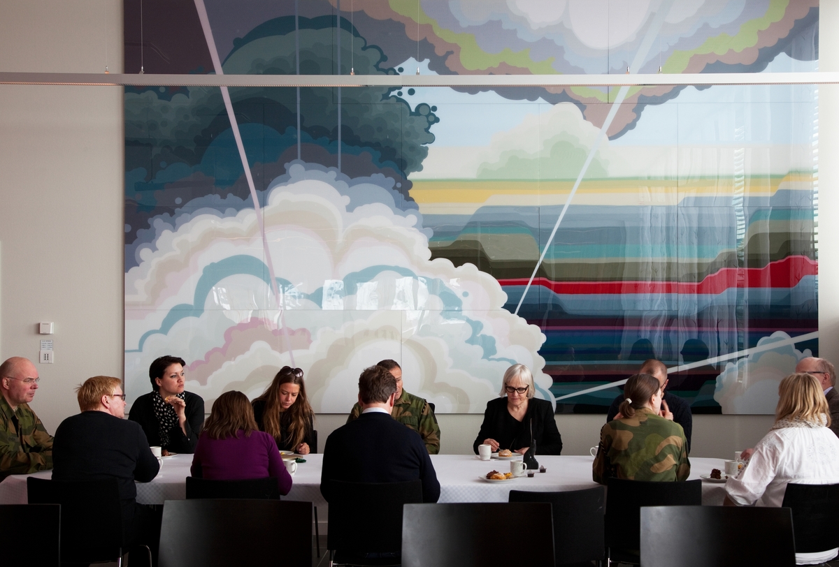Bjørneboe sin ide med verkene er å trekke landskapet utenfor garnisonen inn i messe-rommet. De store vinduene i messa åpner for naturen, og hun ønsker å spille videre på åpenheten i disse landskapene. Motivet i verkene er landskapsinspirert, men har med sine abstrakte grep, den mulighet til å overskride naturens lover nettopp i en todimensjonal beskrivelse. Hun ønsker i disse verkene å fabulere over grensebegrepet og handlingene som foregår i garnisonen på et litt overordnet plan.
