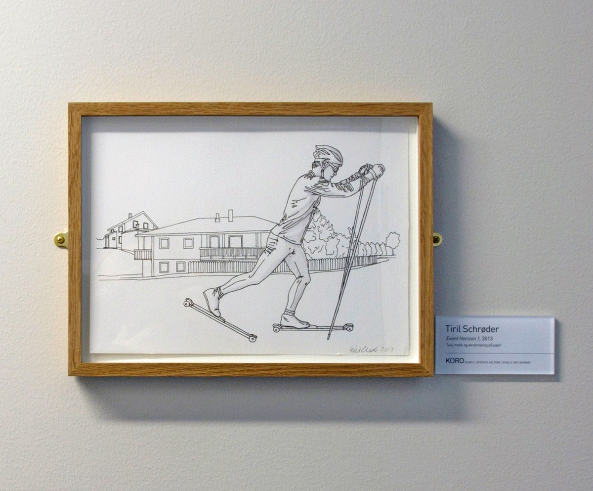 Til saman 18 teikningar av seks kunstnarar er kjøpt inn til dei seks forlegningane. Dei seks har ulike formspråk, men alle har eit blikk for både det heimlege og det storpolitiske. Teikningane til Tiril Schrøder er som stillbilde frå ein draum eller utsnitt frå eit liv. Vi veit ikkje kva som har skjedd, eller kva som skal skje.