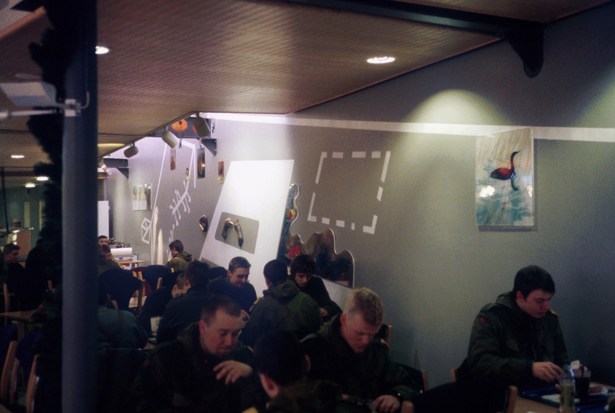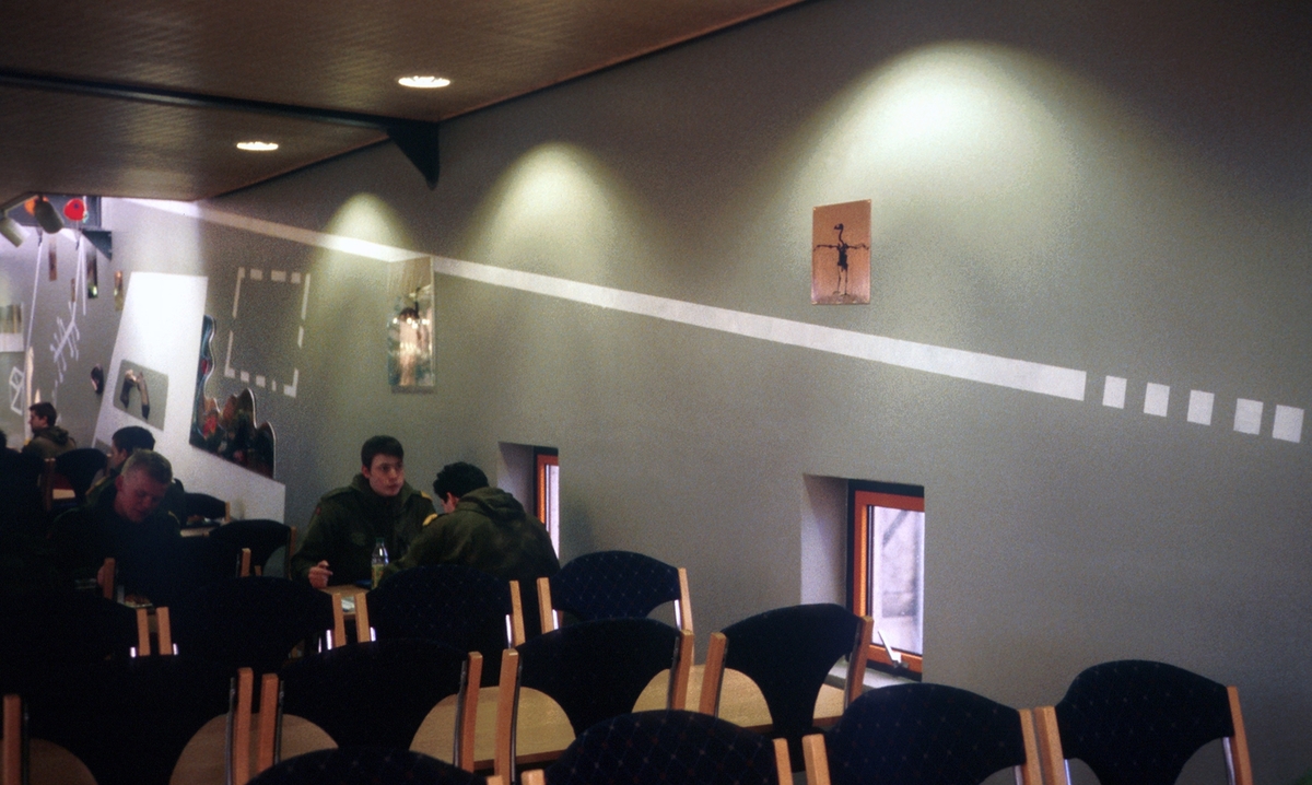 Akrylmaling på murvegg, støpt, etset, patinert kobber og bronse, kull og akrylmaling på papir, plastikk figurer og lyskastere