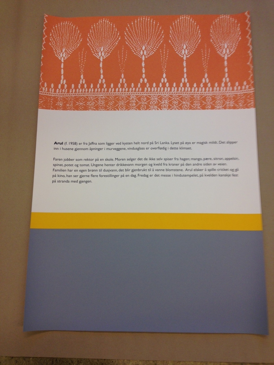 Serien er basert på intervjuer med 7 personer som har deltatt i norsk kurs i regi av VOX. De intervjuede er fra Island, Eritrea, Vietnam, Kapp Verde, Polen, Norge og Siri Lanka. Spørsmålene handlet om minner fra oppvekststedet med vekt på det visuelle, omgivelser og landskaper. Hvilke minner fester seg, hvordan kan de formidles, hva har vi til felles på tross av våre ulikheter, og hvilke preferanser har vi i egenskap av vår biologi? Det er noen av de spørsmålene kunstneren har stilt seg underveis. Bildene består av abstraherte inntrykk fra disse stedene, fargeflater, mønster i kombinasjon med korte tekster destillert fra intervjuene. Global Grammar kan tolkes som en språklig og billedlig gjenfortelling som bygger på ideen om gjenkjennelse som grunnlag for forståelse.