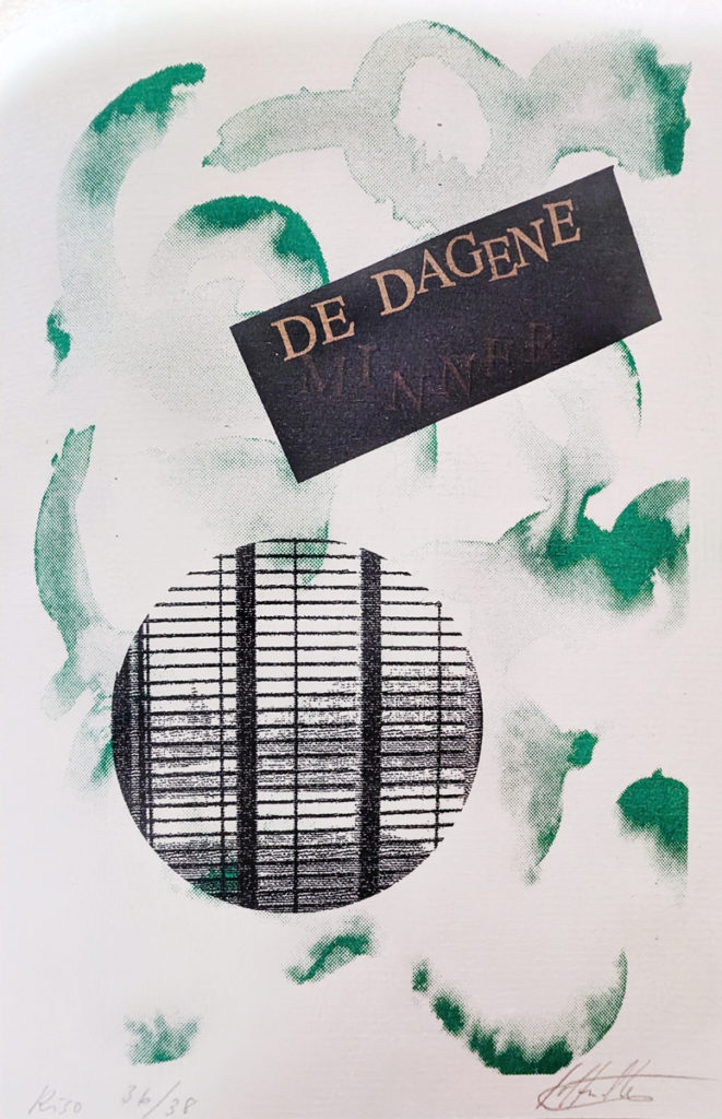 Håndsydd bok, risoprint og maskinskrevet tekst