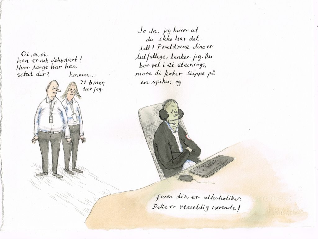 Blyant, akvarell og tusj på papir