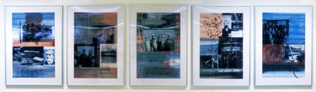 Fotografier, tekster og maling på papir