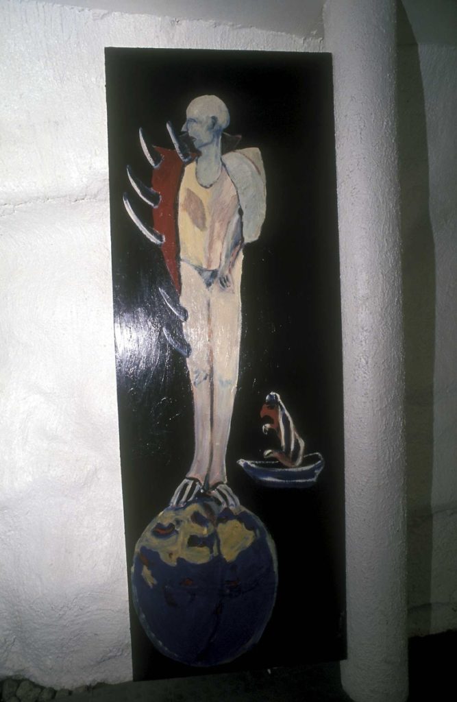 Akrylmaling og voksferniss på plate