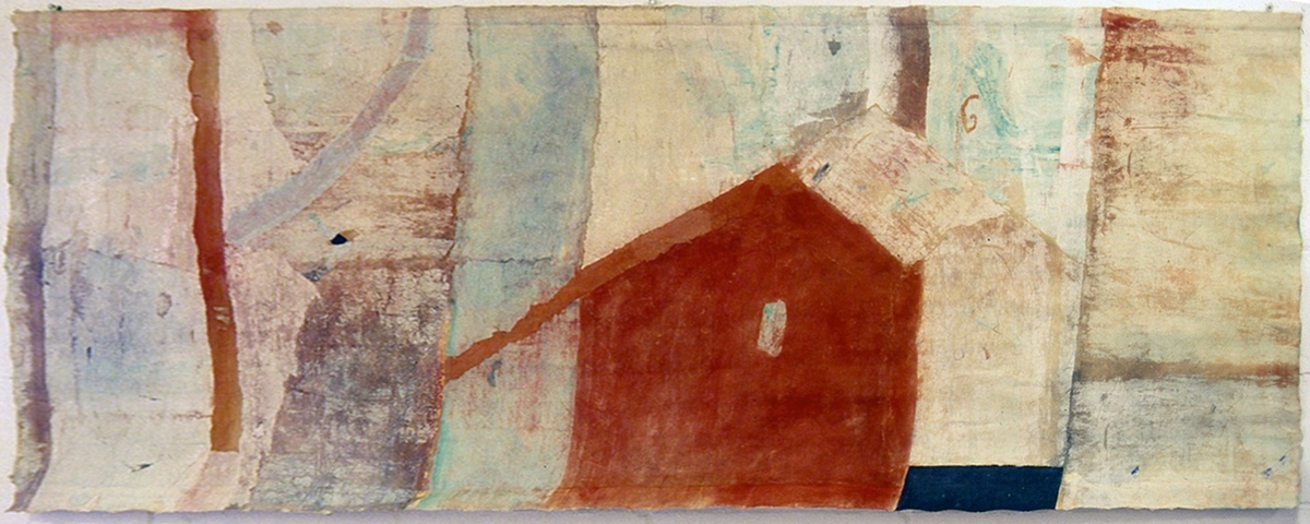 Silketrykkmaling og tekstilfarge malt og trykket på bomullslerret og laminert silkepapir