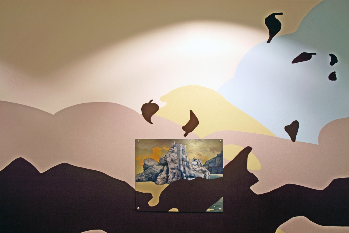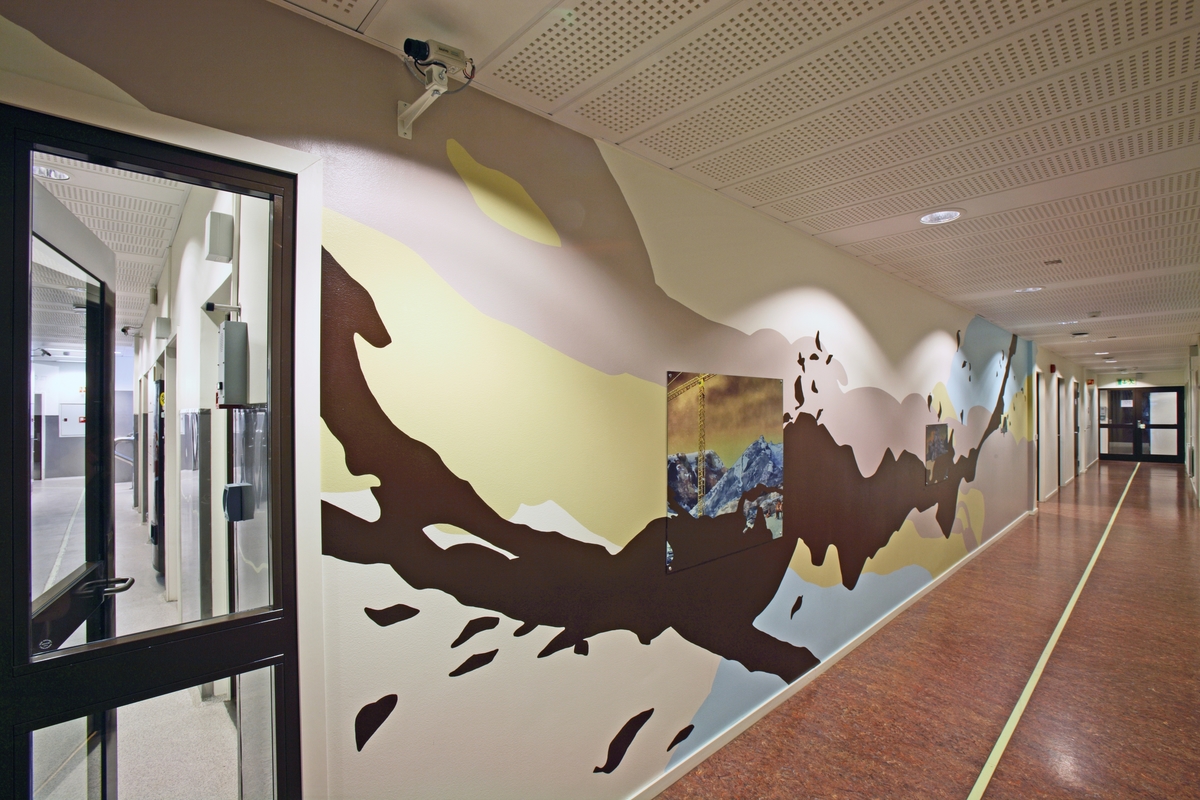 Akrylmaling på vegg med dataprint og akryl på aluminiumsplater