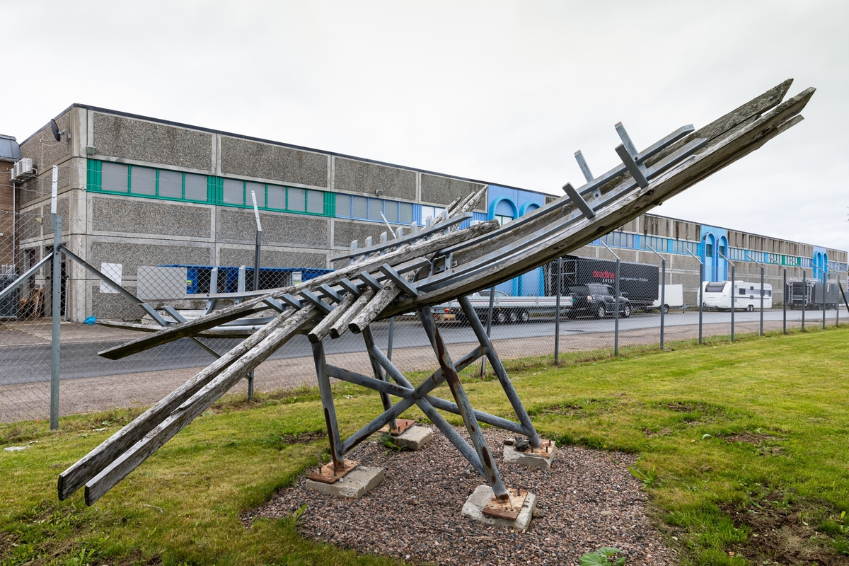 Sveiset, galvanisert jernrør, maling og trykkimpregnerte furuplanker
